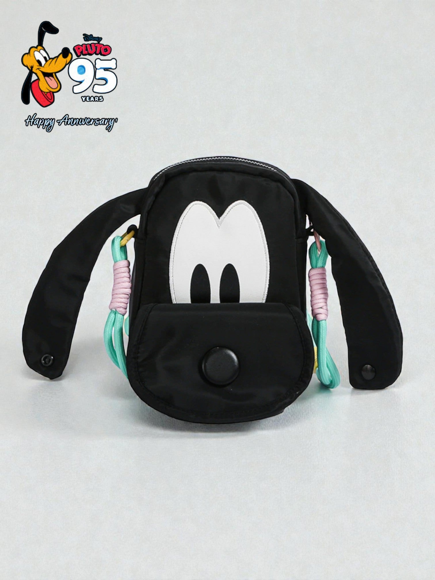 Celebrate the 95th Disney Anniversary with this adorable Pluto Disney Mini Tote Bag! Featuring a cheerful design, premium materials, and fun details like a magnetic ear click, outer pocket, and playful zipper pull.
